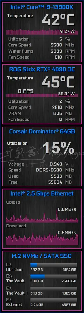 添加项目必须特别留意选对传感器,比如我的电脑被识别成网卡的就有NIC1到NIC5,必须选对了才能显示数据,只能慢慢试。导入别人的模板会出现很多类似的问题,出错的项目要慢慢调整才行。