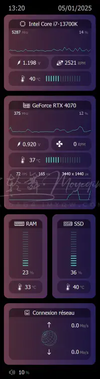 添加项目必须特别留意选对传感器,比如我的电脑被识别成网卡的就有NIC1到NIC5,必须选对了才能显示数据,只能慢慢试。导入别人的模板会出现很多类似的问题,出错的项目要慢慢调整才行。