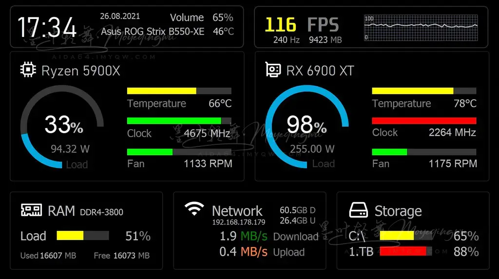 添加项目必须特别留意选对传感器,比如我的电脑被识别成网卡的就有NIC1到NIC5,必须选对了才能显示数据,只能慢慢试。导入别人的模板会出现很多类似的问题,出错的项目要慢慢调整才行。