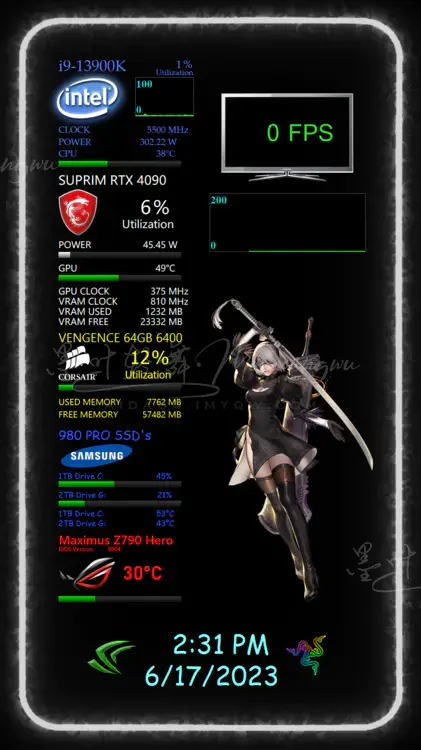 添加项目必须特别留意选对传感器,比如我的电脑被识别成网卡的就有NIC1到NIC5,必须选对了才能显示数据,只能慢慢试。导入别人的模板会出现很多类似的问题,出错的项目要慢慢调整才行。