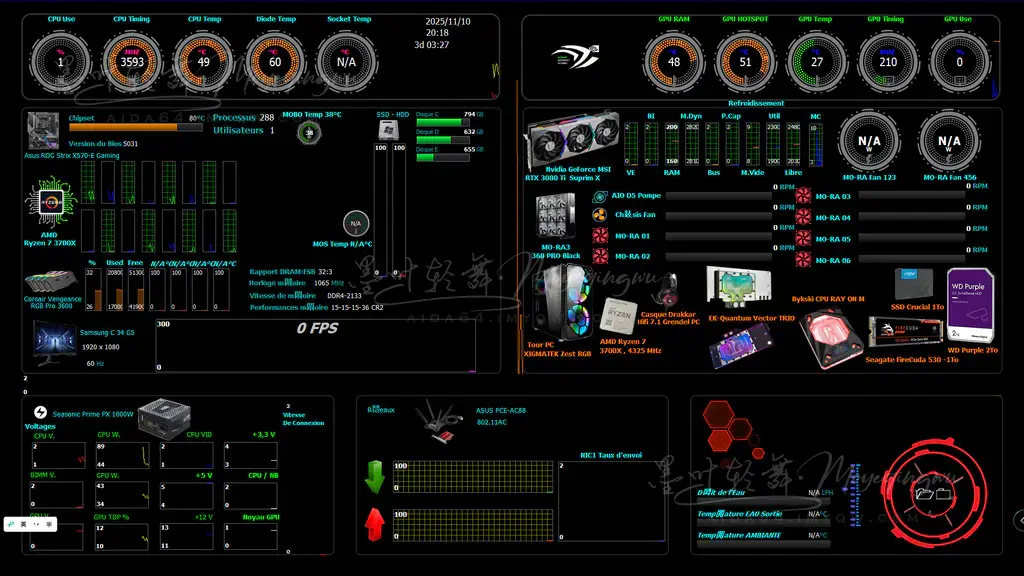 添加项目必须特别留意选对传感器,比如我的电脑被识别成网卡的就有NIC1到NIC5,必须选对了才能显示数据,只能慢慢试。导入别人的模板会出现很多类似的问题,出错的项目要慢慢调整才行。