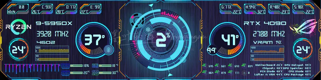 添加项目必须特别留意选对传感器,比如我的电脑被识别成网卡的就有NIC1到NIC5,必须选对了才能显示数据,只能慢慢试。导入别人的模板会出现很多类似的问题,出错的项目要慢慢调整才行。
