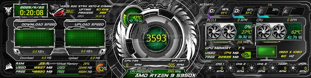 添加项目必须特别留意选对传感器,比如我的电脑被识别成网卡的就有NIC1到NIC5,必须选对了才能显示数据,只能慢慢试。导入别人的模板会出现很多类似的问题,出错的项目要慢慢调整才行。