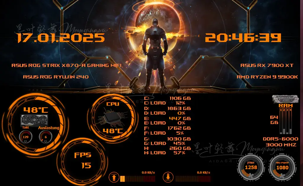 添加项目必须特别留意选对传感器,比如我的电脑被识别成网卡的就有NIC1到NIC5,必须选对了才能显示数据,只能慢慢试。导入别人的模板会出现很多类似的问题,出错的项目要慢慢调整才行。