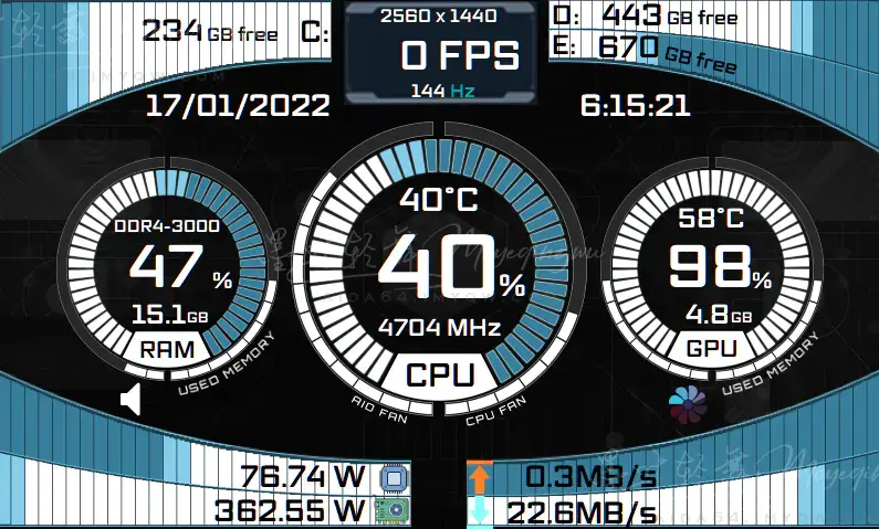 添加项目必须特别留意选对传感器,比如我的电脑被识别成网卡的就有NIC1到NIC5,必须选对了才能显示数据,只能慢慢试。导入别人的模板会出现很多类似的问题,出错的项目要慢慢调整才行。