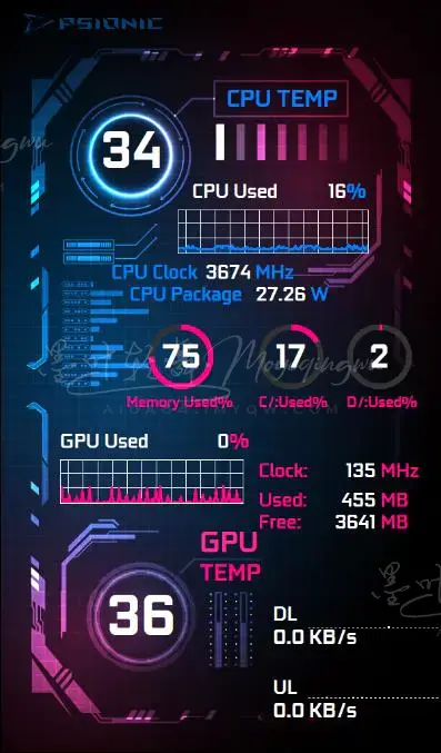 添加项目必须特别留意选对传感器,比如我的电脑被识别成网卡的就有NIC1到NIC5,必须选对了才能显示数据,只能慢慢试。导入别人的模板会出现很多类似的问题,出错的项目要慢慢调整才行。