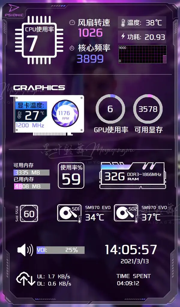 添加项目必须特别留意选对传感器,比如我的电脑被识别成网卡的就有NIC1到NIC5,必须选对了才能显示数据,只能慢慢试。导入别人的模板会出现很多类似的问题,出错的项目要慢慢调整才行。