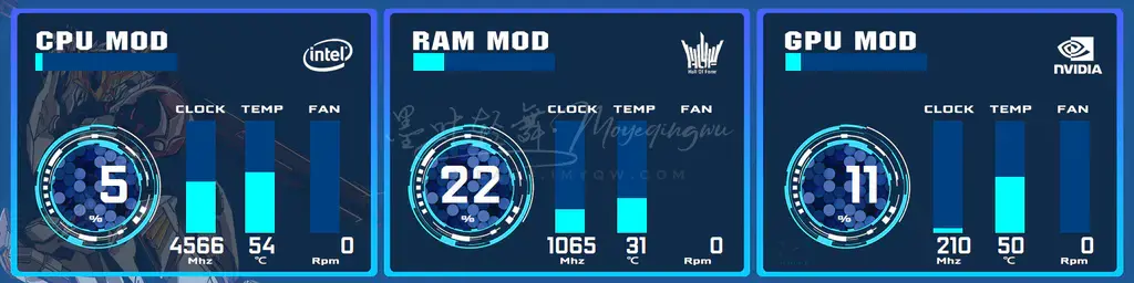 添加项目必须特别留意选对传感器,比如我的电脑被识别成网卡的就有NIC1到NIC5,必须选对了才能显示数据,只能慢慢试。导入别人的模板会出现很多类似的问题,出错的项目要慢慢调整才行。