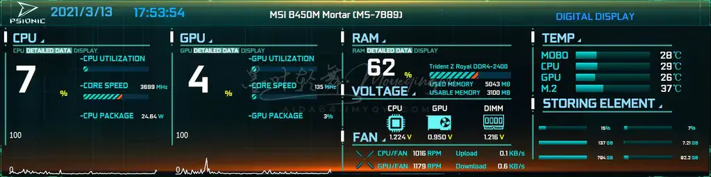 添加项目必须特别留意选对传感器,比如我的电脑被识别成网卡的就有NIC1到NIC5,必须选对了才能显示数据,只能慢慢试。导入别人的模板会出现很多类似的问题,出错的项目要慢慢调整才行。