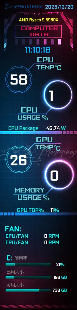添加项目必须特别留意选对传感器,比如我的电脑被识别成网卡的就有NIC1到NIC5,必须选对了才能显示数据,只能慢慢试。导入别人的模板会出现很多类似的问题,出错的项目要慢慢调整才行。